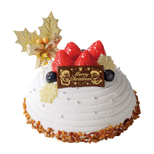 たっぷりのミルキークリームと苺・黄桃を2層にサンドした、どこかなつかしいオーソドックスなクリスマスケーキ。