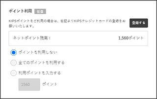 ポイントを利用する場合は「全てのポイントを利用する」もしくは「利用ポイントを入力する」を押してください。
