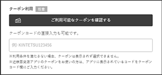 クーポンを利用される場合はクーポンコードを入力するか、「利用可能なクーポンを確認する」から選んでください。