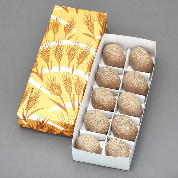 もう一つは、こし餡と大豆を包んだ餅生地にきな粉をまぶしました。