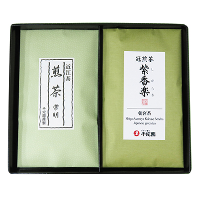草津店取扱い商品〈千年の香り千紀園〉朝宮茶詰合せ(朝宮冠煎茶「紫香楽」80g・近江煎茶「常明」80g)