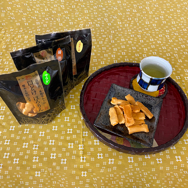 滋賀のブランド米「滋賀羽二重糯」を使用し、使用する分だけ製粉し常に鮮度の良い生粉で製造しています。とても風味がよく、かりっとして柔らかい食感です。