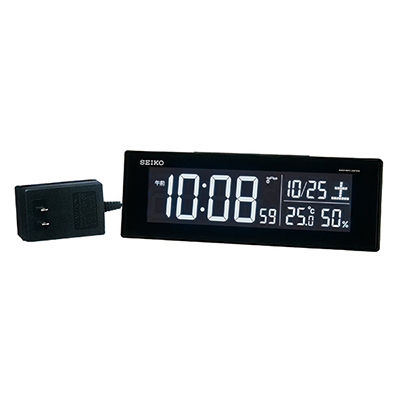 ■電波修正機能、温度・湿度表示、明るさ切替(3段階)、電子音アラーム、高コントラスト液晶、ACアダプタ付