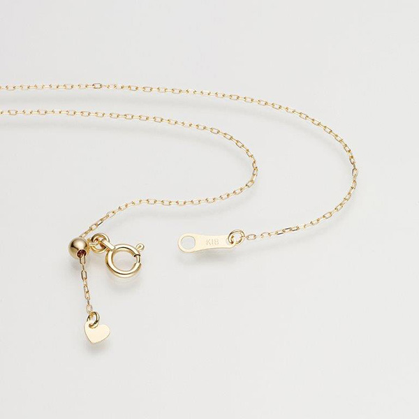 チェーンはスライドアジャスター製ですので、お召し物に合わせて自由に長さを調節することができます。