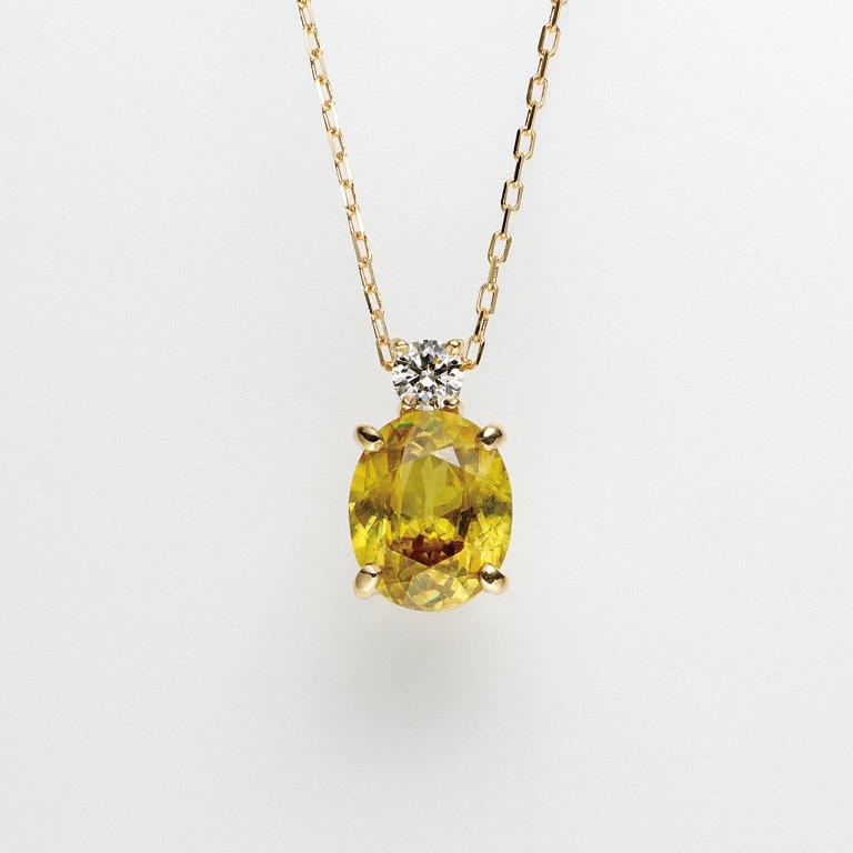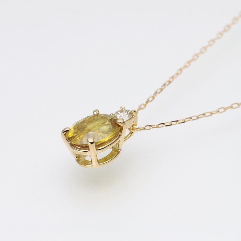 新しい7月の誕生石 18金イエローゴールドスフェーンダイヤペンダント
