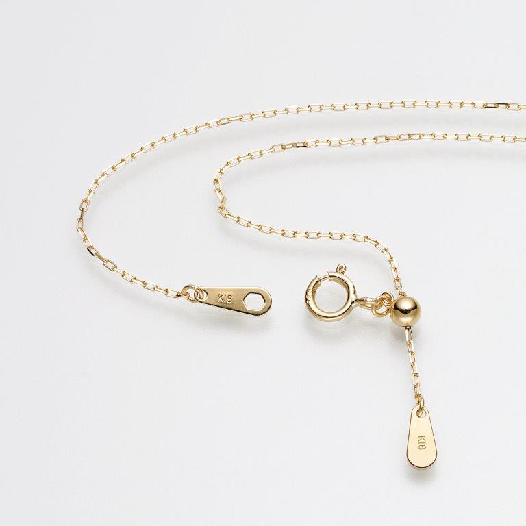 チェーンはスライドアジャスター製ですので、お召し物に合わせて自由に長さを調節することができます。