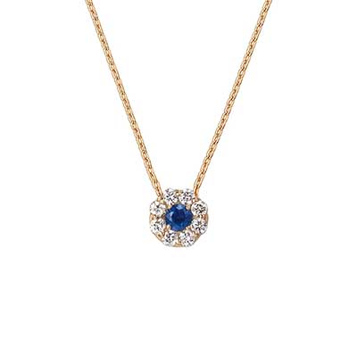 誕生石をダイヤモンドで取り巻きシンプルに仕上げた大人のアミュレットアイテム。■素材:K18/サファイア、ダイヤモンド(0.10ct)