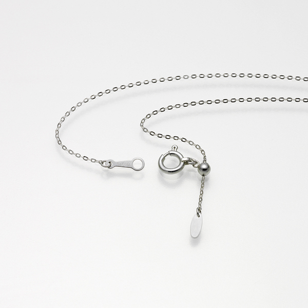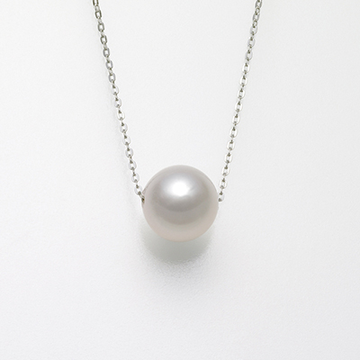 真珠のテリが際立つアコヤ真珠を直接チェーンに通したスルーペンダント。プラチナの冴えた輝きは、甘すぎない大人クールな印象です。