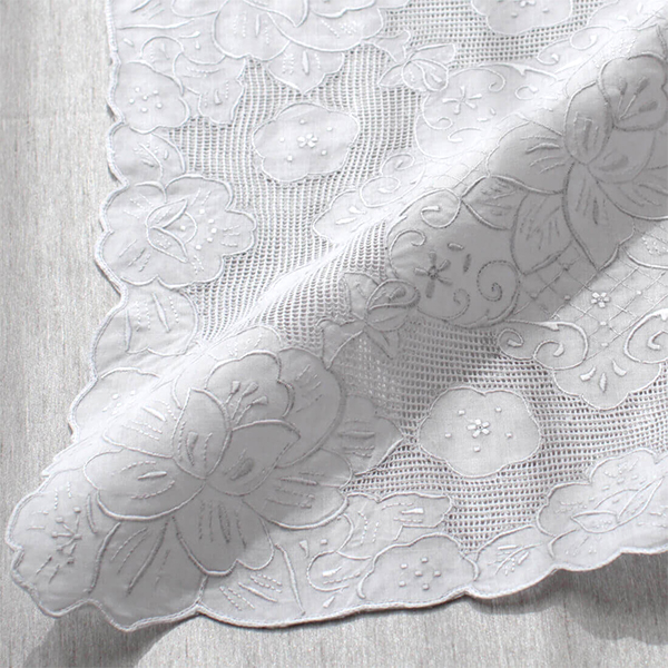 一針一針心をこめて作られた、手刺繍ハンカチーフ