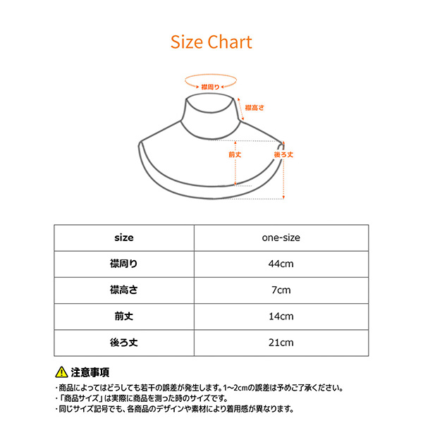 “付け襟”のようにトップスの下に入れて着用すると、ハイネックを着ているように見えるので、外出時にも気兼ねなくご使用いただけます。