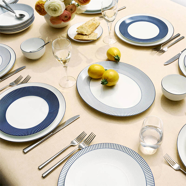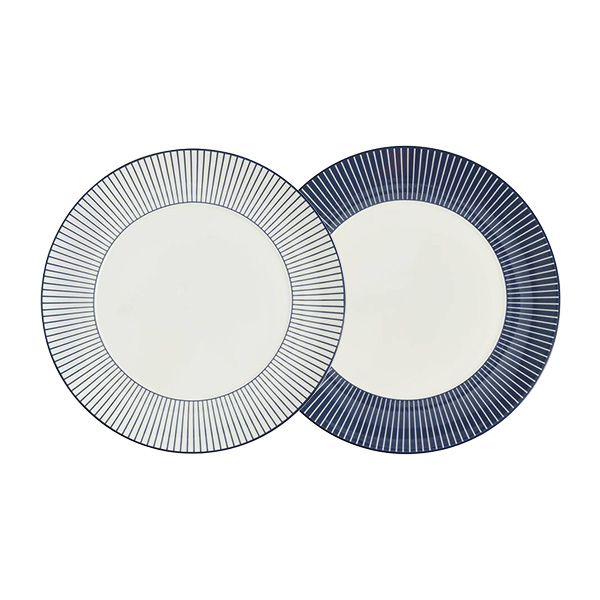 〈ウェッジウッド〉ジオブルー ピンストライプホワイト&ブルー プレート24cmペア
