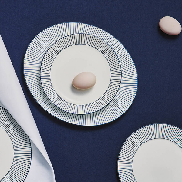 ジオ ブルー(ピンストライプ)コレクションは、フルーテッド(縦溝柄)モチーフが特徴です。