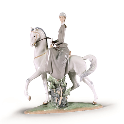 そっと目を伏せ物思いにふける瞬間、輝かしい未来の夢や希望、大切な人、家族との想い出…。どんな思いが胸に去来しているのでしょうか。リヤドロは、ドレスの細かな織り目や風に吹かれる様子、そして指先の一本一本にいたるまで、磁器とは思えないほど繊細で柔らかく描き出しています。