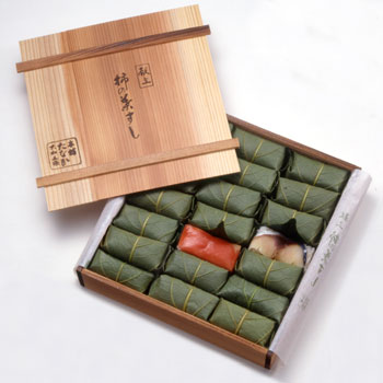 鯖や鮭の切り身をすし飯にのせ、香り豊かな柿の葉で包んだ、奈良の名物、柿の葉すし。一つ頬張れば、すしに移った柿の葉の香りが口中に広がります。