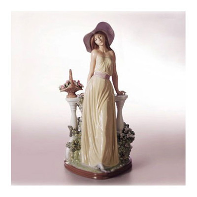 そっと目を伏せ物思いにふける瞬間、輝かしい未来の夢や希望、大切な人、家族との想い出…。どんな思いが胸に去来しているのでしょうか。リヤドロは、ドレスの細かな織り目や風に吹かれる様子、そして指先の一本一本にいたるまで、磁器とは思えないほど繊細で柔らかく描き出しています。