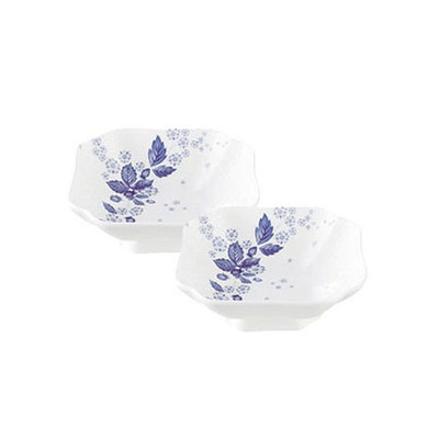 ウェッジウッドの和食器「ストロベリー ブルーム インディゴ」日本の食卓をイメージし、小花や野いちごをブルー単色で表現したパターン。