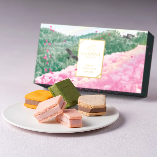 サクッと焼き上げたサブレでなめらかなチョコレートガナッシュをサンド。 限定の「桜&ホワイトチョコレート」と定番フレーバー3種を詰め合わせました。