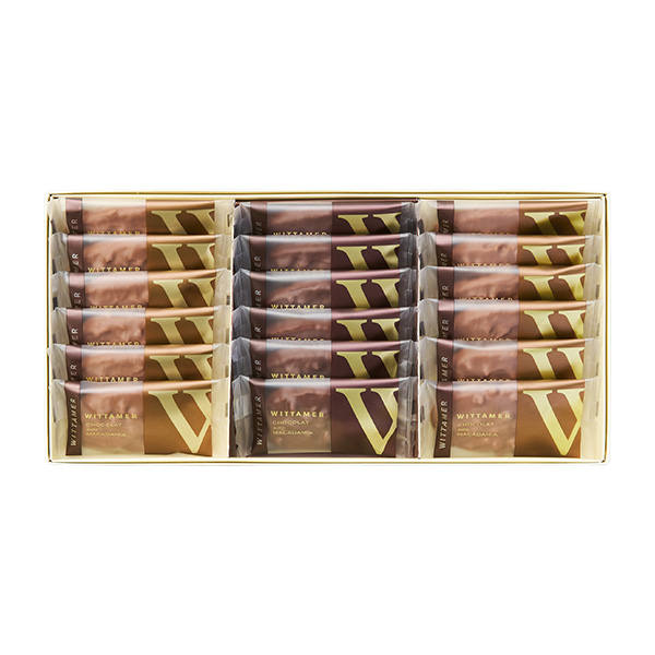 厚みのあるチョコレートをラングドシャ生地でサンド。ダーク、ミルク、ホワイトの3種類が8枚ずつ入っています。