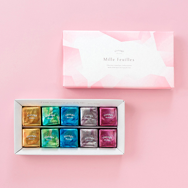 バター100%使用してサクサクに焼き上げたパイ生地を薄く積み重ね、様々なクリームをサンドし、チョコレートでコーティングした“千枚の木の葉”という名のパイ菓子です。
