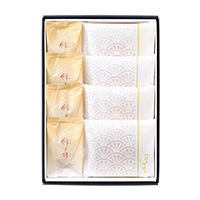 やわらかい玉子煎餅で小豆こし餡をはさんでいます。しっとりと柔らかくできておりますのでどなたにでも喜んでいただけます。手軽なお茶菓子として人気の商品です。