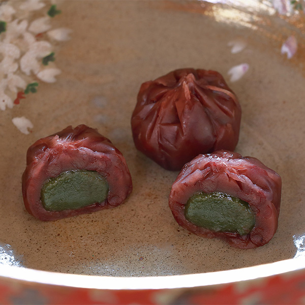 とろけるような柔らかい求肥のお餅を淡い甘さに炊き上げた丹波大納言小豆で包み、棹物の仕上げました。