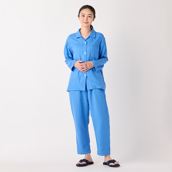 〈UCHINO〉Lマシュマロガーゼベーシックレディスパジャマ/ブルー