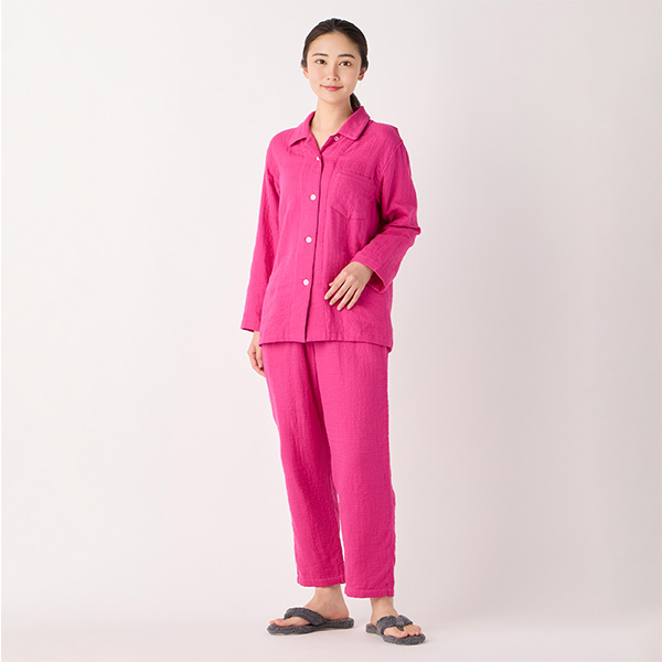 〈UCHINO〉Lマシュマロガーゼベーシックレディスパジャマ/ダークピンク