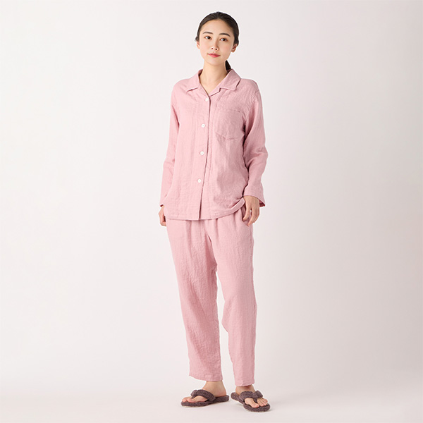 〈UCHINO〉Lマシュマロガーゼベーシックレディスパジャマ/ピンクグレー