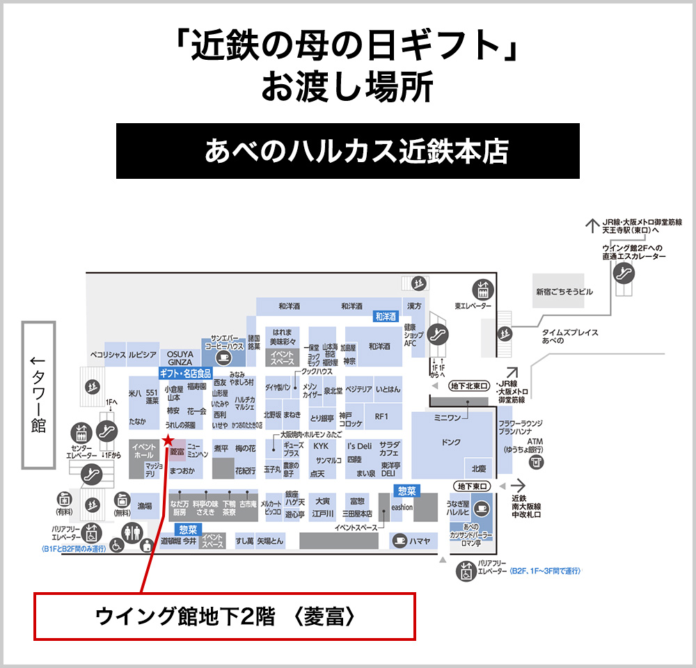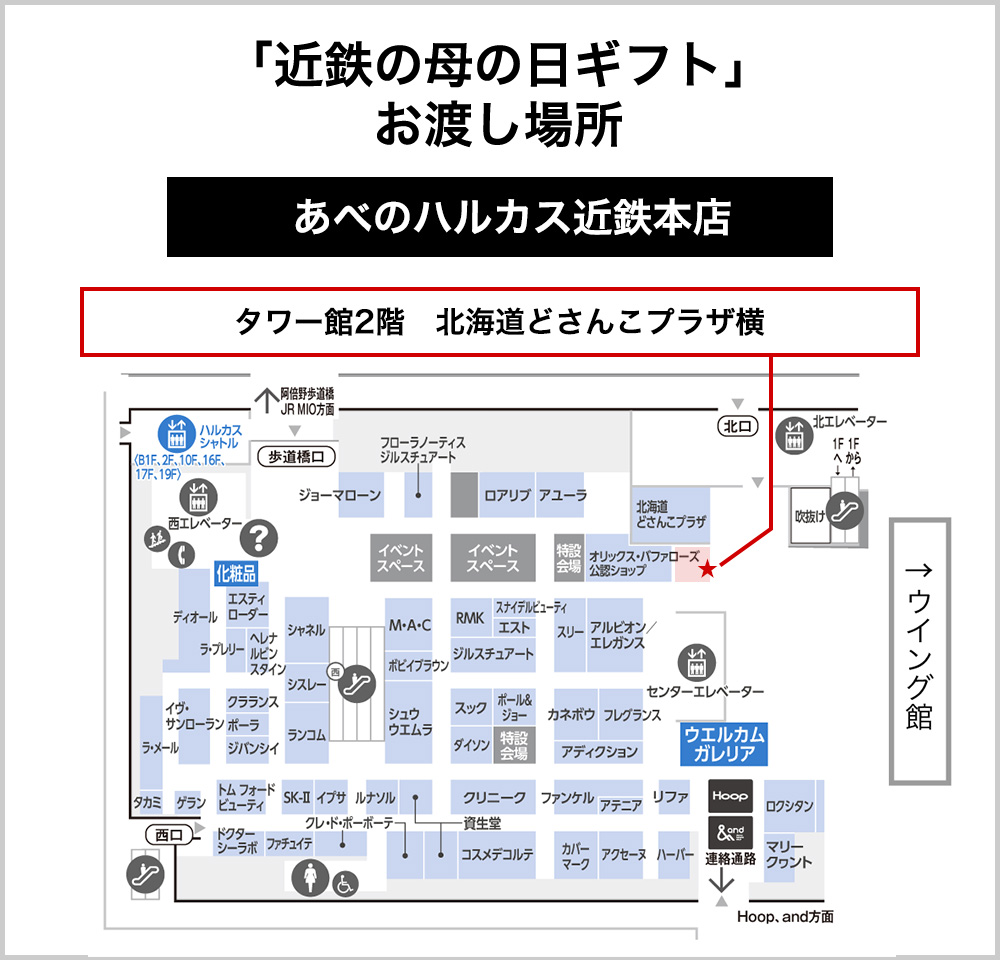 場所あべのハルカス近鉄本店 タワー館2階 北海道どさんこプラザ横