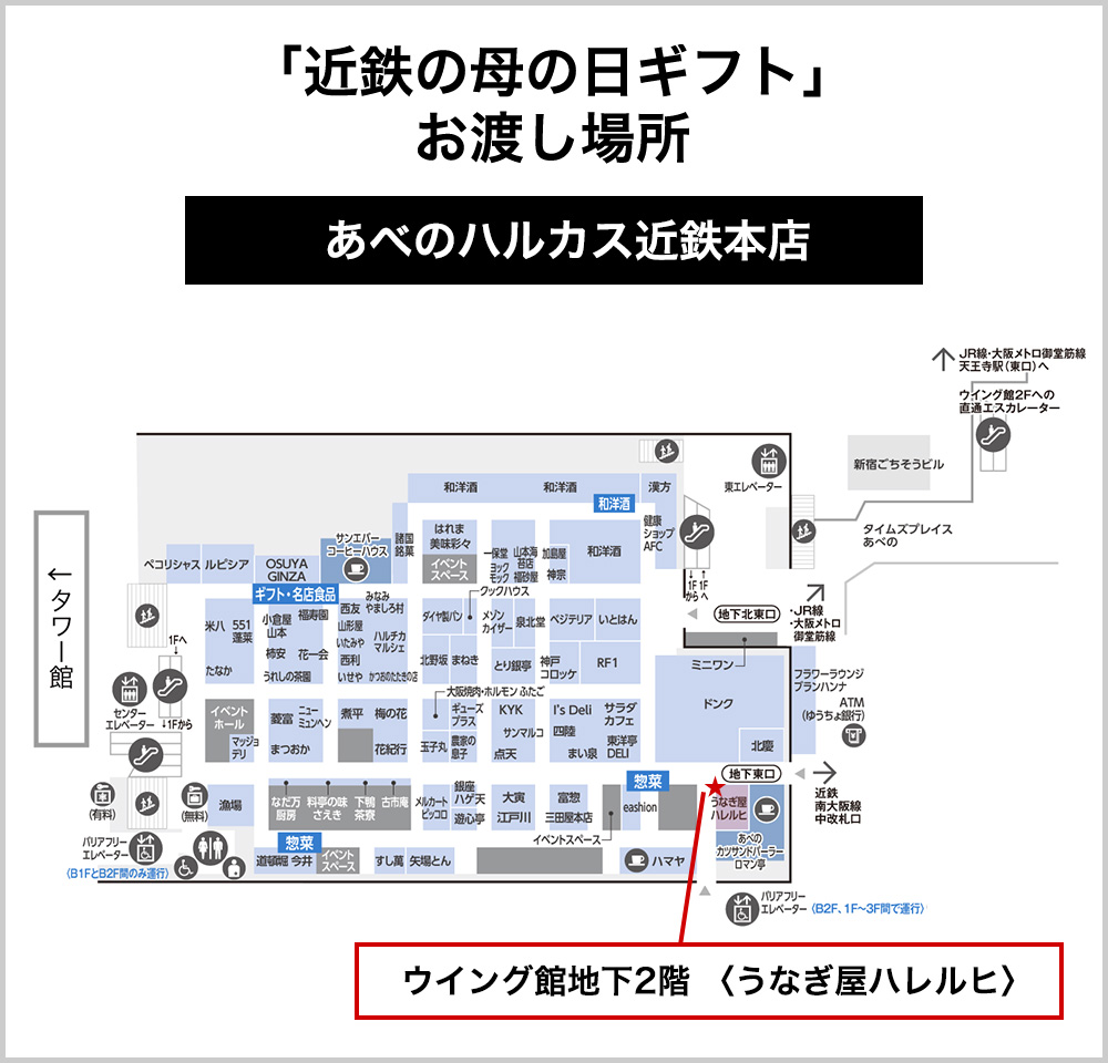 受取場所ウイング館地下2階 〈うなぎ屋ハレルヒ〉 > フロアMAP |